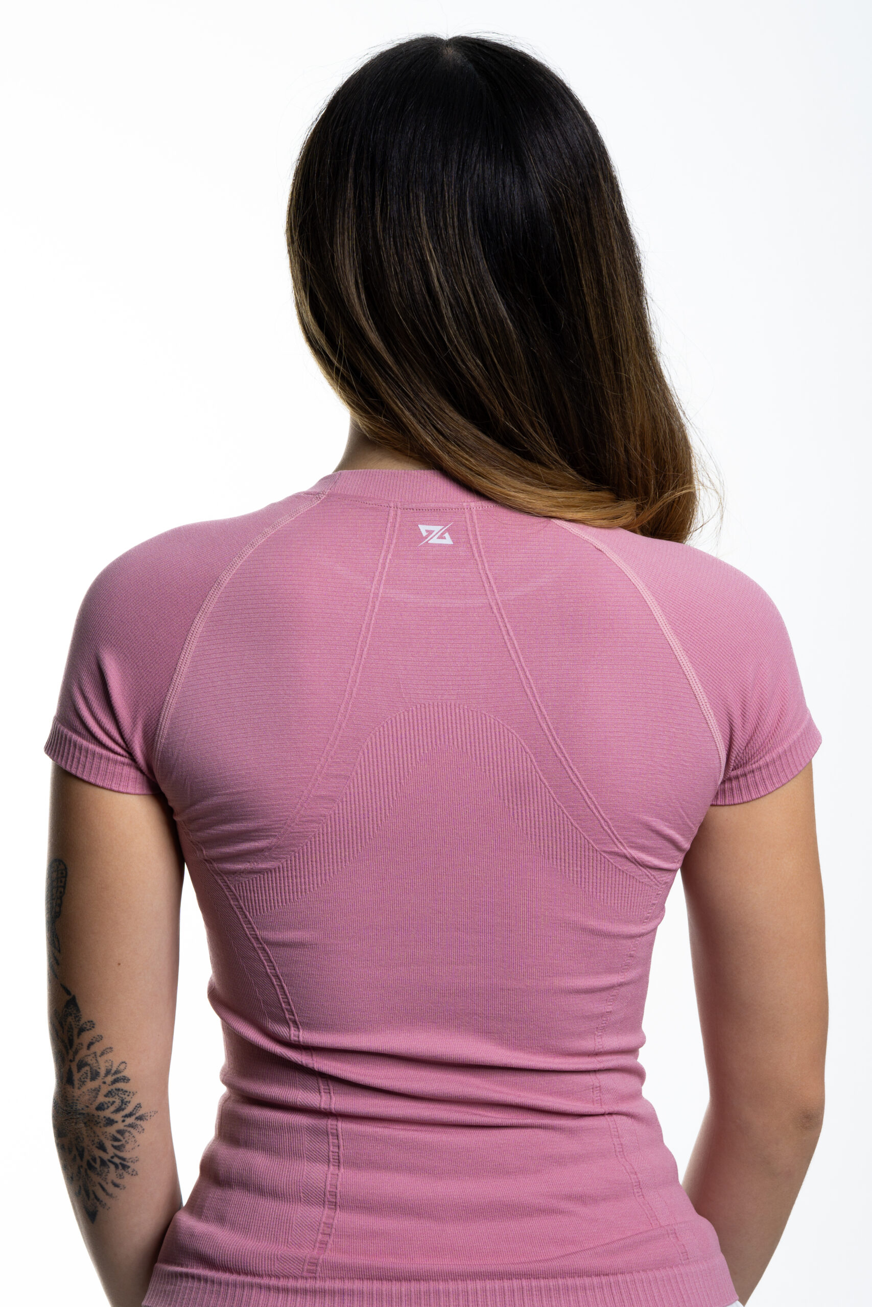 Está elaborada en tela seamless (sin costuras visibles), lo que favorece una mejor adaptación al cuerpo y evita rozaduras. Ofrece compresión estratégica en el área abdominal, funcionando como una faja integrada que moldea y brinda soporte durante la actividad física o en el día a día.